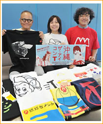 沖縄になじみのある企業のロゴをTシャツにデザインしたものです。